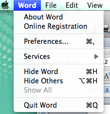 Click 'Word' on the top bar, a drop down menu will appear like the following: