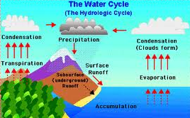 In the water cycle, water changes its state from liquid to vapor or solid. The water on the earth remains a stable balance although it moves from one reservoir to the other via its different states.